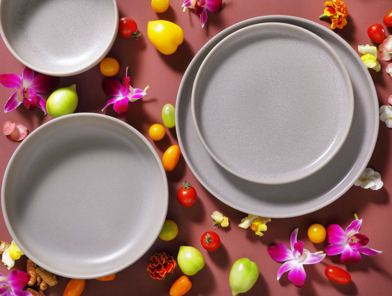 De zachte tinten van het grijs voeren ons mee naar het strand bij zonsondergang. Wanneer het zachte ochtendlicht het zand raakt, verschijnen vormen en Colouren die nooit hetzelfde zijn. Introduceer deze breekbare effecten op je eigen eettafel!